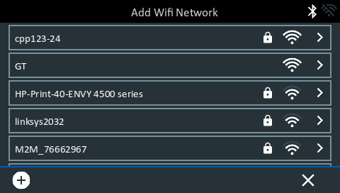 To add a network: Tap the plus (+) sign, then select from one of the displayed detected networks.